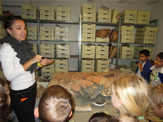 Un gruppo rimane allo scavo, un gruppo va nel magazzino a vedere tutti i reperti che sono stati trovati in questo scavo di Parlascio